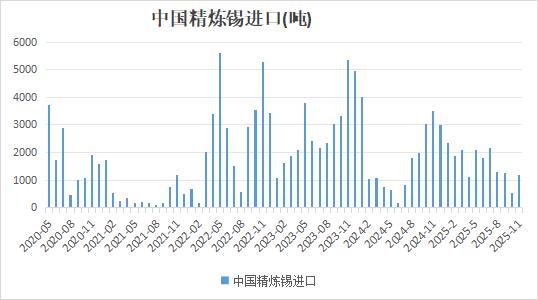 中国精锡进出口贸易动态 - 2025年11月中国精锡进口量为1195吨,同比大幅减少66.05%,但环比显著增加127.04% [1] - 2025年1月至11月中国锡锭进口总量累计为1.77万吨 [1] - 11月进口窗口基本处于关闭状态,当月进口量大部分来自贸易商此前在LME锡盘面所做的单边行情订购,实际数量有限 [1] 中国精锡出口表现 - 2025年11月中国精锡出口量为1946吨,同比增加33.57%,环比增加31.46% [1] - 出口贸易方式主要为进料加工贸易,主要销往荷兰、韩国、印度、日本等精锡消费地 [1] - 2025年1月至11月中国锡锭出口总量累计为2万吨,同比增长32.41% [1] 中国精锡贸易平衡 - 2025年1月至11月,中国累计净出口精锡2298吨 [1]