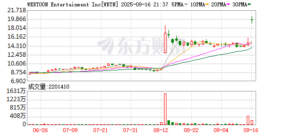 摩根大通将网络漫画平台WEBTOON目标价从14美元上调至22美元。消息面上,迪士尼将收购该公司 2%的股份。 ...