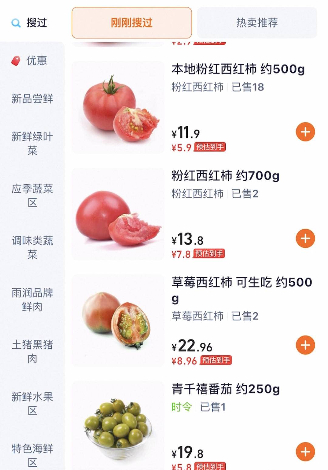 "西红柿炒蛋这道国民菜,现在得省着放西红柿了!"近期,西红柿价格持续走高,不少南京市民发现,做一道家常的西红柿炒鸡蛋,西红柿的成本竟已超 过鸡蛋。这一"鸡蛋配不上西红柿"的现实在社交平台引发广泛热议。 Q 搜讨 刚刚搜过 热卖推荐 ● 优惠 新品尝鲜 新鲜绿叶 菜 应李蔬菜 区 调味类蔬 菜 国润品牌 鲜肉 士猪黑猪 肉 新鲜水果 区 特色海鲜 区 本地粉红西红柿 约500g 粉红西红柿 已售18 ¥11.9 ¥5.9 预估到手 草莓西红柿 可生吃 约500 a 草莓西红柿 已售2 ¥22.96 ¥8.96 预估到手 青千禧番茄 约250g 时令 已售1 ¥19.8 ¥5 8 预估到手 + 价格倒挂:西红柿成餐桌"新贵" 在农贸市场采购的市民戴先生感叹:"现在西红柿炒蛋要放不起西红柿了,还是蛋更舍得放一点。"以一道家常菜用量计算,目前2个大西红柿约需一斤 半,花费15元,而4个鸡蛋仅约2元,西红柿成本远超鸡蛋数倍。"过去鸡蛋是主角,如今西红柿反倒成了'贵价食材'。" 粉红西红柿 约700g 粉红西红柿 已售2 ¥13.8 ¥7.8 预估到手 随着后续本地番茄逐步上市,市场预计西红柿价格有望回落。眼下,这道国民 ...