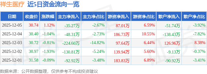 股票行情快报:祥生医疗(688358)12月5日主力资金净卖出35.27万元