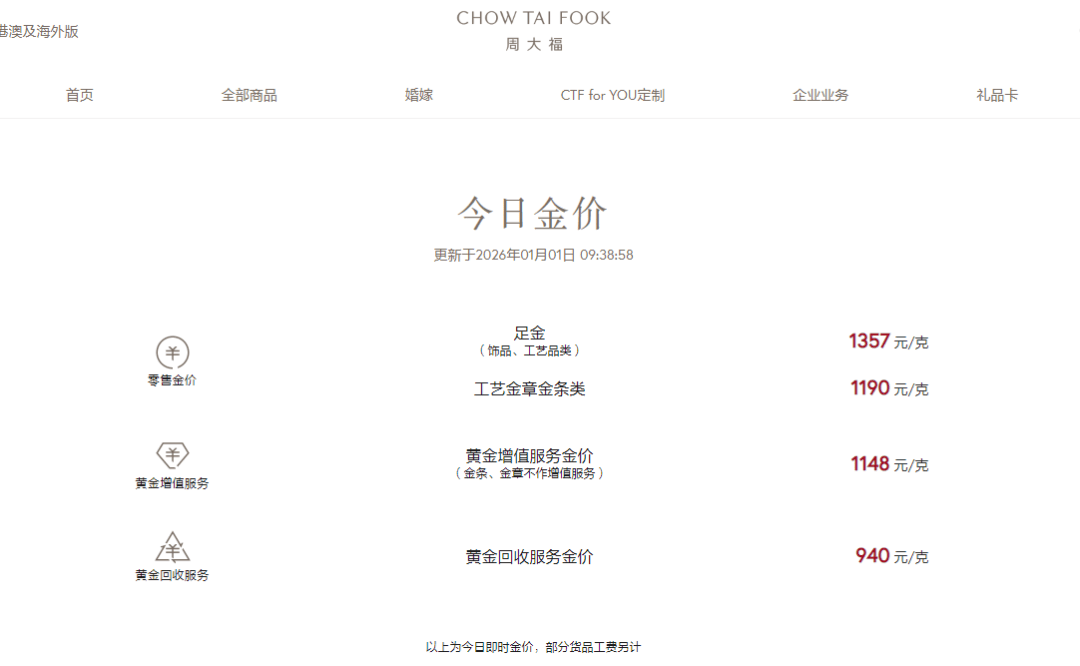国内品牌金饰价格下调,周生生足金跌至1345元克