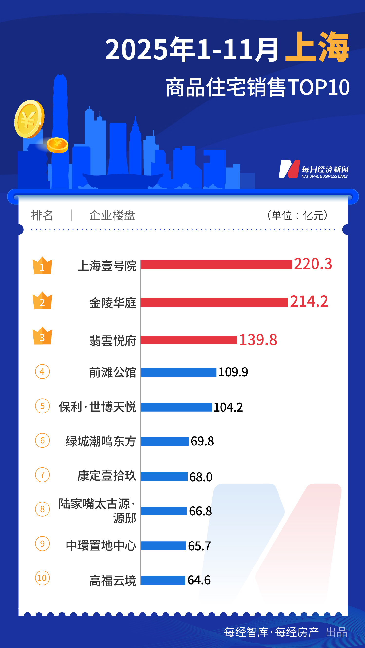 每经数读|前10个月上海TOP10楼盘销售额超千亿元 “百亿大盘”都在上海
