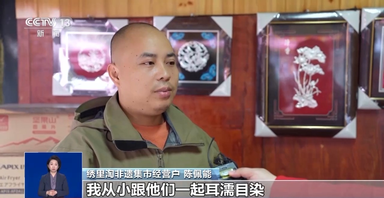 在贵州黔东南苗族侗族自治州凯里市,有一处名为"绣里淘"的非遗大集。新年临近,当地手工艺人们带着琳琅满目的非遗作品汇聚于此,也吸引了不少游客 前来。 在凯里市,占地近600亩的苗侗风情园汇集了鼓楼、风雨桥、芦笙场等传统民族建筑元素。"绣里淘"非遗集市就坐落在这个风情园中,可以淘到不少好东 西。 绣里淘非遗集市经营户 陈佩能:我父母是银饰匠人,我从小就耳濡目染。生意好的时候一个月营业额十来万元。 绣里淘非遗集市经营户 廖朝芝:我们家主要是卖蜡染。顾客很喜欢,有时候给我们介绍订单,有时候他们的订单我们都做不下来。 游客 陈女士:就买了一个包、一幅画,然后还有两个贴片。很多是手工艺的。 在"绣里淘"顾客们不仅可以逛逛逛、买买买,还可以亲手制作一件非遗作品,亲身体验非遗的魅力。 2023年9月"绣里淘"正式开集,目前这里共有商户700余家。在集市开办之初,这里的顾客主要是黔东南本地的少数民族群众,但很快外地游客就成了消费的 主力。 游客 吴先生:我画的是一幅奔马,听说一会儿要拿到板蓝根的染色池染色,脱蜡以后做成方巾。明年是2026年,祝大家马到成功。 漫步在绣里淘非遗集市,可以嗅到板蓝根染料的幽幽清香,看到指尖记忆的活 ...