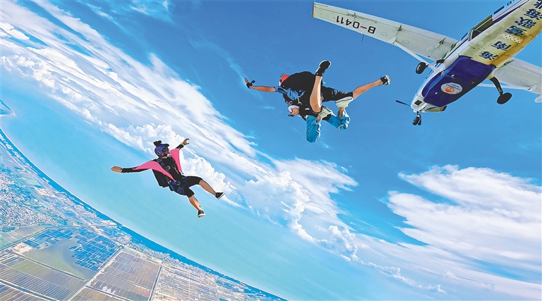 海南旅游活动 - 国庆假期期间游客在海南乐东莺歌海跳伞基地体验高空跳伞项目[2] - 10月3日游客在儋州海花岛旅游度假区海洋乐园观看表演感受假日氛围[5]