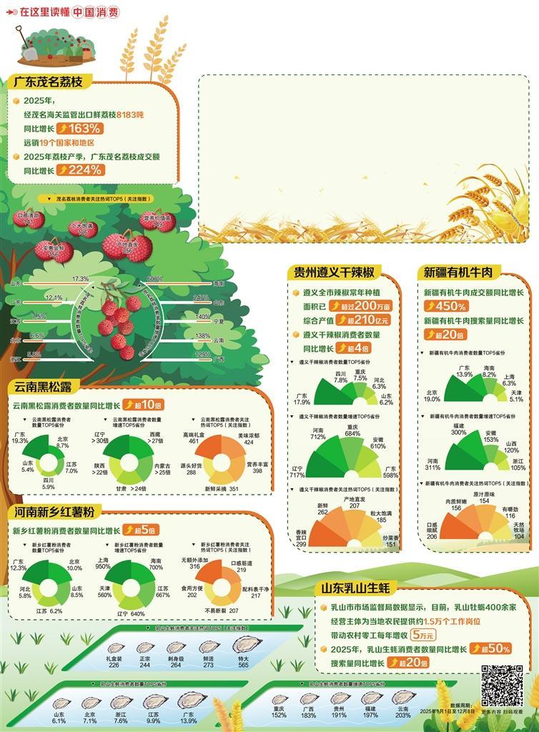 面对诸多有利条件,抓住"出圈"的机遇,还要通过提升标准化水平、提高产品附加值等举措,长久释放特 色农产品的品牌效应,让更多特色农产品百花齐放。 虽然说是"隐藏款",但不少特色农产品在当地的种植、养殖历史并不短。比如,安徽省鹅肝产业始于20世 纪80年代,四川鱼子酱产业始于21世纪初,云南黑松露产业规范发展历史也有十几年。此前这些特色农产 品少为人知的原因有几个:一是产品标准化程度低、产量较少,只能供应特定市场,难以形成规模效应; 二是很多产品只是作为原料和初级产品,加之缺乏差异化营销,附加值较低;三是受到冷藏运输等条件制 约,产品销售半径较小,市场认可度较低。 当前,越来越多"隐藏款"被"挖"出来,首先反映的是国内消费市场的差异化特征与巨大的潜力。消费者与 市场的互动更加频繁,市场在满足更多细分需求的同时,一些特色农产品得到曝光,慢慢从田间地头走到 消费者中间。其次,各地区各部门鼓励区域公共品牌发展,包括茂名荔枝、五常大米、柳州螺蛳粉等在内 的品牌,借助庞大的销售网络、成熟的营销渠道,不断扩大销量。再次,随着直播电商快速发展,很多特 色产业搭上了直播的快车,实现了小规模的供需对接,激发了特色农产品贸易活力。 ...