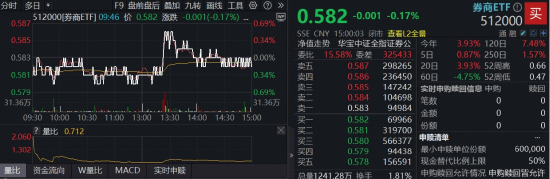 滞涨券商行情虽迟但到?顶流券商ETF(512000)放量上探近2%,机构:看好券商板块估值向上空间