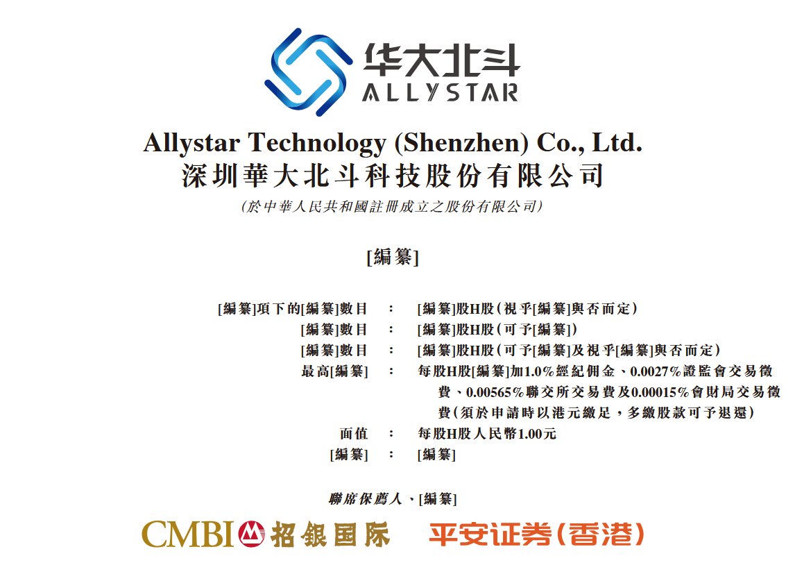 | 编纂 项下的 编纂 数目 | " | [编纂]股H股(視乎[编纂]奥否而定) | | --- | --- | --- | | [编纂]數目 | " | [编纂]股H股(可于 编纂]) | | [编纂 数目 | " | [编纂]股H股(可于编纂]及祝平 编纂 奥否而定) | | 故尚编纂 | " | 每股H股[编纂]加1.0%經紀佣金、0.0027%證監會交易禮 | | | | 費、0.00565%聯交所交易費及0.00015% 會財局交易檔 | | | | 費(須於申請時以港元繳足,多繳股款可予退還) | | 血值 | : | 每股H股人民幣1.00元 | | 【编纂 : | | 【消毒】 | 2025年12月19日,来自广东深圳龙岗区的 深圳华大北斗科技股份有限公司Allystar Technology (Shenzhen) Co., Ltd. (简称"华大北斗")在港 交所递交招股书,拟在香港主板挂牌上市。这是继其于2025年6月12日递表失效后的再一次申请。 华大北斗招股书链接: 主要业务 华大北斗,作为中国知名的空间定位服务提供商,提供支持北斗及全球主 要GNSS系统的导航定位芯片和模块,同时提供 ...