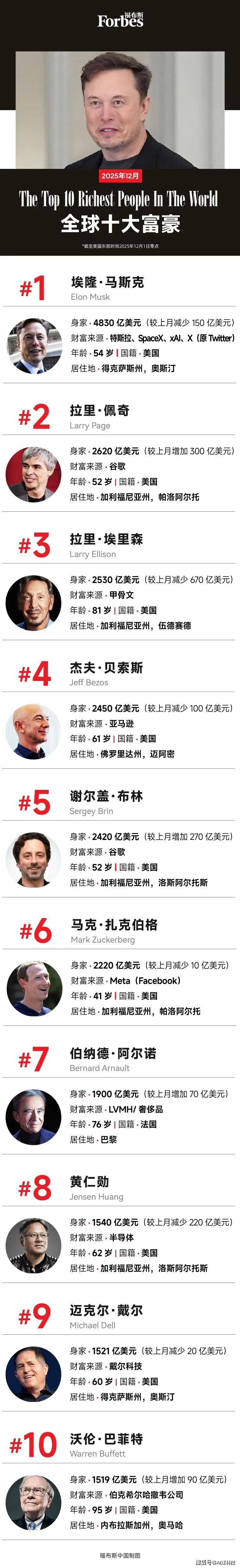 12月全球富豪榜大洗牌:第二名易主,AI 股神佩奇登顶!