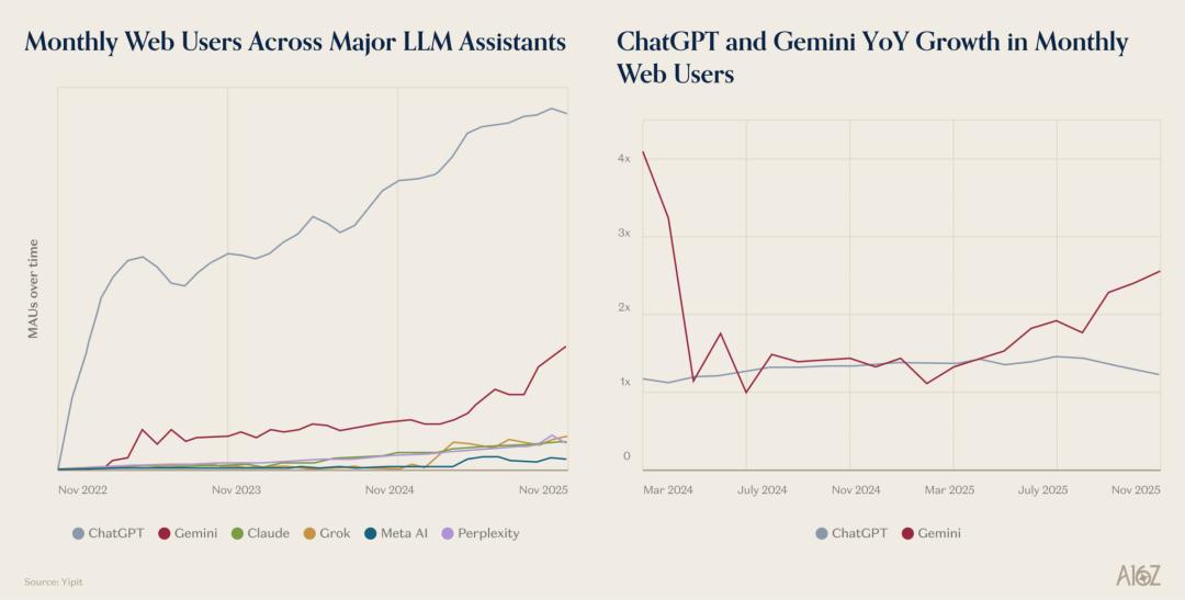 2025年,AI终于从实验室冲进你的手机、浏览器,甚至购物车——但别被热闹骗了:赢家通吃的游戏从未如此真实。在 Andreessen Horowitz (a16z)最新发布的《2025消费级AI现状》年终报告中,我们看到一场表面百花齐放、实则高度集中的军备竞赛:ChatGPT 依然稳坐王座, Gemini 凭借一张"香蕉图"狂飙突进,而大多数用户——超过90%——根本懒得切换第二款AI。 这一年,有人靠吉卜力滤镜引爆社交网络,有人用AI写邮件、做PPT、试衣服,还有人试图把聊天机器人变成动画伙伴……但真正留下来的, 不是最炫的功能,而是最无缝的体验。在这份充满数据、故事与预判的深度复盘中,a16z 不仅拆解了巨头们的高光与败笔,更指出了初创公 司如何在夹缝中撕开新机会。未来已来,只是分布得还不均匀。 原文链接:https://a16z.com/state-of-consumer-ai-2025-product-hits-misses-and-whats-next/ 对各大AI实验室而言,2025年是消费级产品集中发布的一年。OpenAI推出了数十项AI功能——包括GPT-4o图像生成、独立版Sora应用及群聊 ...