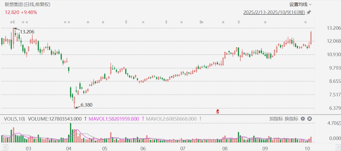 港股异动丨联想集团拉升大涨超10%,股价创逾7个月新高