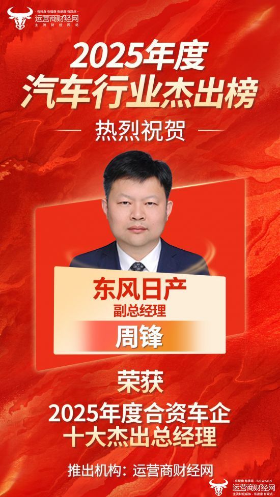 重磅消息!东风日产副总周锋荣获“2025年度合资车企十大杰出总经理”