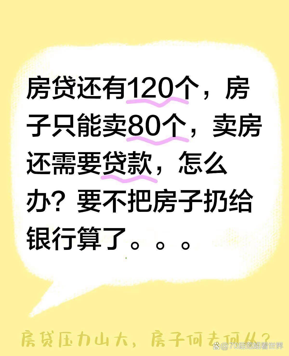 有些事情感觉很讽刺,也感觉很不可思议,但现实就摆在这里,不得不去面对和接受,要不然该怎么办呢? 以前是贷款买房,卖房的时候多少也可以收到买家的钱,我在09年的时候买了一套房,总价30万,每个月贷款还1000块钱左右,然后又把这房子给租了出 去,每个月租金刚好抵了房贷,5年后我把这房子卖掉,除去还银行的贷款,我拿到手28万块钱,除去10万本金,我是不是在5年内赚到了18万块钱? 可现在就完全颠倒了,2021年买了一套房子,总价260万,贷款150万,2025年把这个房子卖掉,现在这个房子最多能卖150万,四年下来,这房子明面上刚 好亏了110万,算上4年的房贷50万,总共亏了160万。 他目前的房贷还有120万,现在房子只能卖80万,如果不把银行这个贷款还清,房子是不能过户的,他现在还需要去银行贷款40万,才能把这个120万的贷款 还清,才能过户。 朋友说,我不要房子了,这个房子我送给银行好了,可以吗? 不要这样做,我们已经试过了,疫情的时候断供,然后法拍了法院7折卖了,不够还贷款还差了5万,然后我们也没去管,他觉得5万块钱银行也不会来追 责。过了几年缓过来了,去法院查一下5万滚成了18万,现在还在分期中。 银 ...