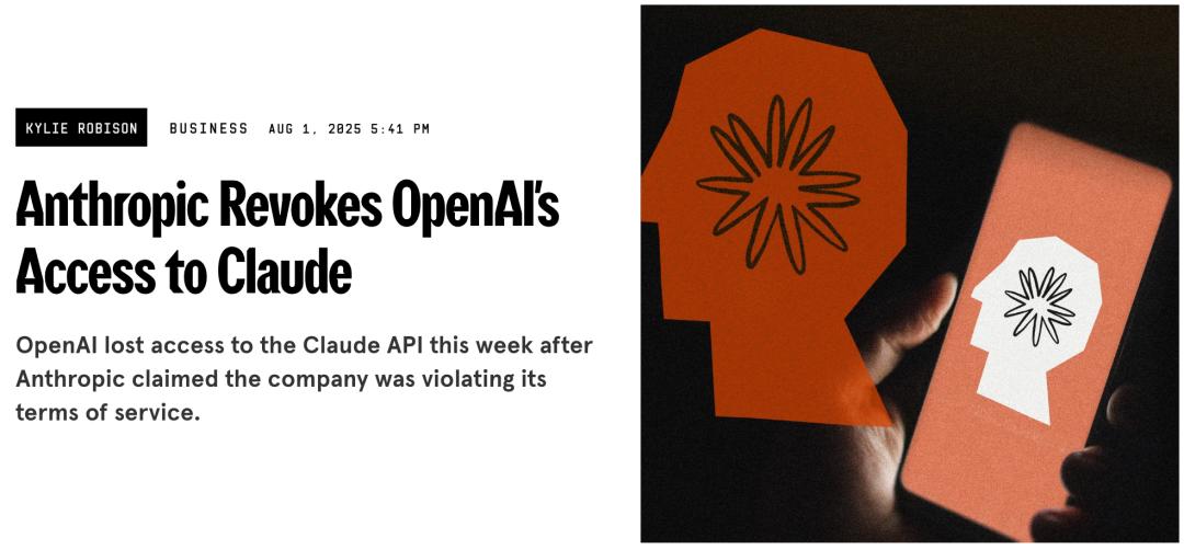 Anthropic突封OpenAI的ClaudeAPI,指其违约用Claude支援即将发布的GPT-5开发及安全测试。此举标志AI巨头围绕数据与接口展开新一轮封锁战, API成市场准入与创新博弈的战略资源,在业内引发热议与监管关注。 掀桌,拔网线,彻底拉黑! 本周二,AI领域的两大巨头撕破脸。 据多位知情人士爆料,Anthropic公司已经切断了OpenAI对其所有大语言模型的API访问权限。 换句话说,OpenAI被老对手Anthropic彻底「拉黑」了。 Anthropic给出的理由简单粗暴:OpenAI公然违约! Anthropic的发言人Christopher Nulty发表了一份火药味十足的声明: Claude Code(Anthropic旗下编程工具)现在是全世界程序员的必备神器。 因此当我们得知 OpenAI 自己的技术人员在 GPT-5 发布之前也在使用我们的编程工具时,并不感到意外。 「但很不幸,这种行为严重违反了我们的服务条款。」 根据Anthropic的商业条款,任何客户都不得利用其服务「构建与之竞争的产品或服务,包括训练竞争性AI模型」,更不用说「逆向工程或复制」其服务 了。 而这次封 ...